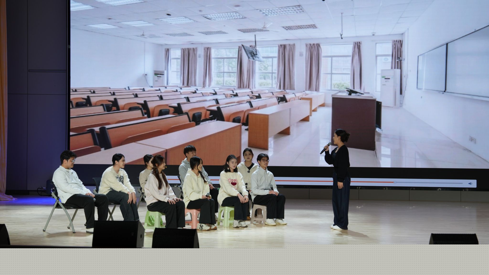 情景劇《請回答2024》,以幽默詼諧的方式回顧了播音與主持藝術(shù)專業(yè)的學(xué)習(xí)故事,通過角色扮演和對話,巧妙將致敬教師與校園生活結(jié)合起來,讓觀眾在歡笑中感受到播音專業(yè)課堂的趣味與魅力。