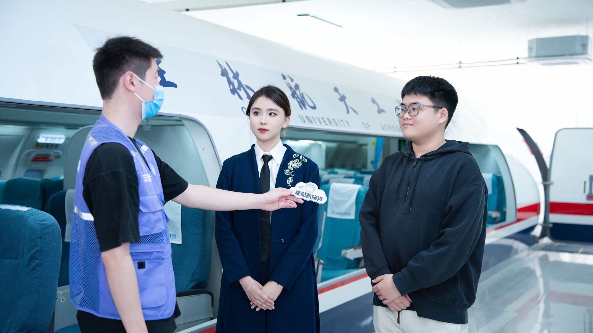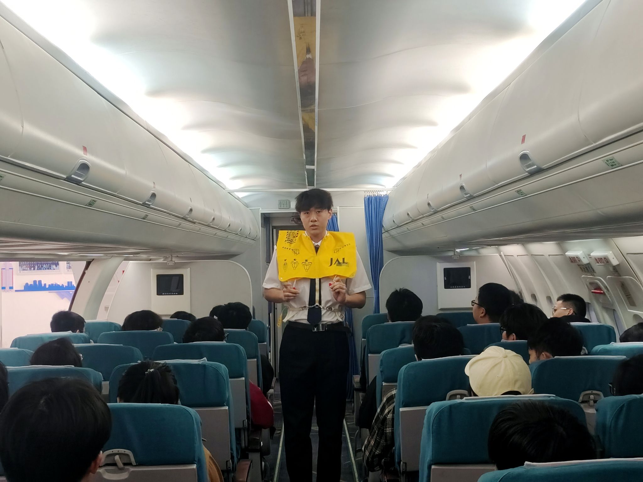 活動(dòng)期間,航空服務(wù)與旅游管理專業(yè)體驗(yàn)區(qū)的“客艙服務(wù)技能”與“客艙服務(wù)禮儀”兩大項(xiàng)目成為焦點(diǎn)。學(xué)生代表發(fā)揮先鋒模范作用,化身“專業(yè)導(dǎo)師”,現(xiàn)場(chǎng)對(duì)客艙安全操作流程進(jìn)行規(guī)范演示。從安全帶的正確使用講解,到各類應(yīng)急設(shè)備的操作示范,他們對(duì)每個(gè)動(dòng)作的標(biāo)準(zhǔn)及意義都進(jìn)行了細(xì)致剖析。在禮儀環(huán)節(jié),學(xué)生們圍繞微笑管理、站姿走姿等方面展開專業(yè)示范,帶領(lǐng)同學(xué)們沉浸式學(xué)習(xí)民航服務(wù)禮儀規(guī)范。一位參與活動(dòng)的同學(xué)分享道:“此次體驗(yàn)讓我深刻認(rèn)識(shí)到,航空服務(wù)工作不僅需要飽滿的熱情,更離不開精準(zhǔn)的專業(yè)技能與得體的禮儀規(guī)范,細(xì)節(jié)之處方能彰顯職業(yè)素養(yǎng)。”