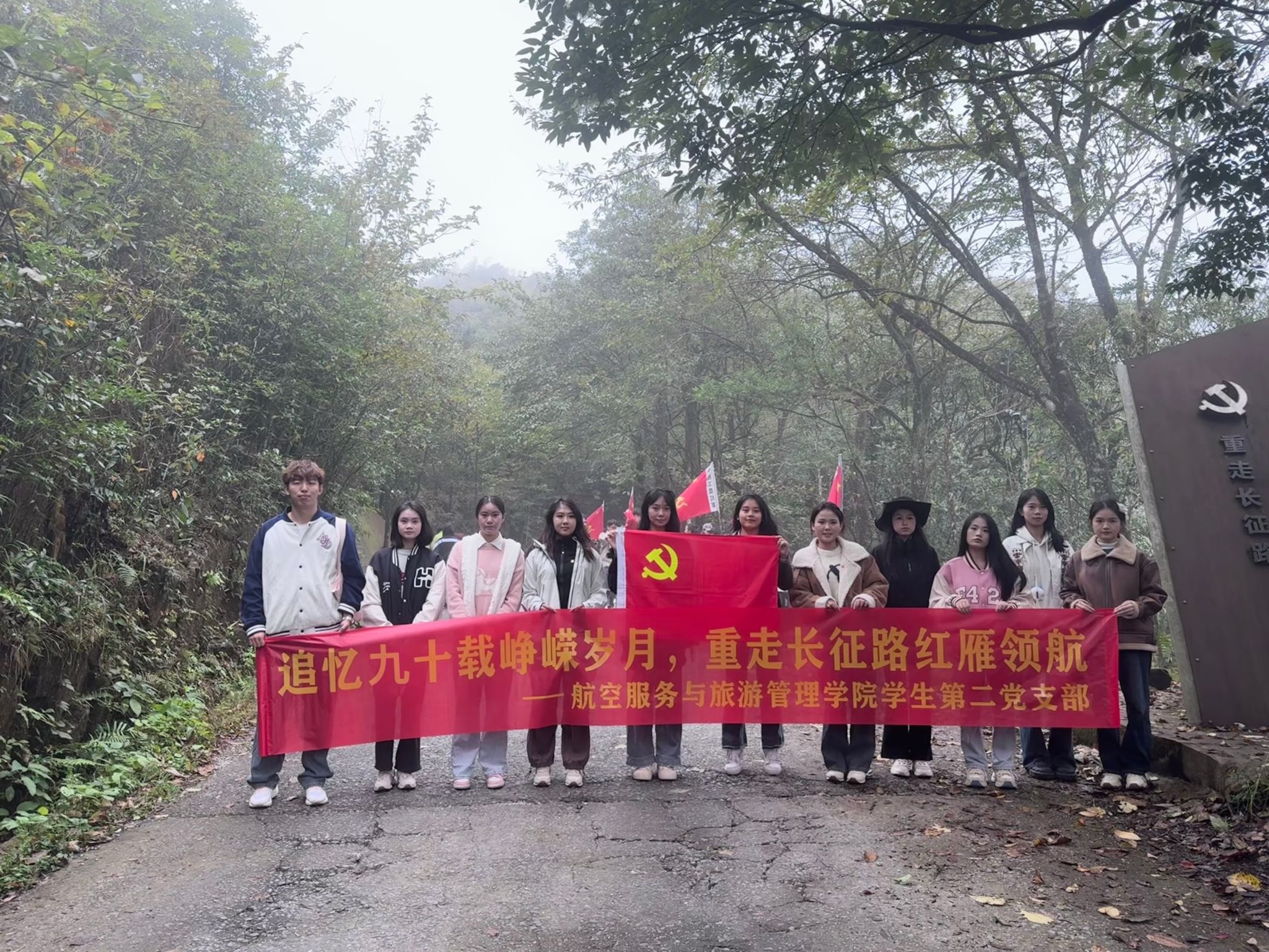 為深入推進黨史學(xué)習(xí)教育常態(tài)化長效化,繼承和弘揚紅色基因,近日,航空服務(wù)與旅游管理學(xué)院第二黨支部組織黨員、入黨積極分子,前往貓兒山紅軍故道和紅軍廣場,開展了一場以“追憶九十載崢嶸歲月,重走長征路紅雁領(lǐng)航”為主題的紅色教育活動。
